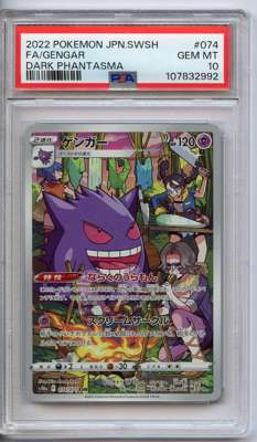 Gengar #74 Japanese from the Dark Phantasma expansion, graded a GEM MT 10 by PSA.