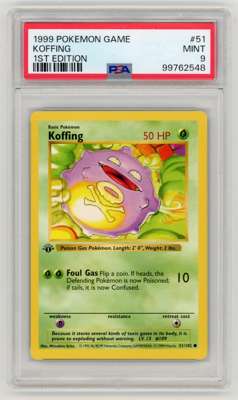 Koffing #51 from Base Set 1st Edition, graded a MINT 9 by PSA.