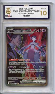 This Team Rocket's Mewtwo EX #231 from Destined Rivals has achieved a grade of 10 from MGC (Majesty Grading Company).