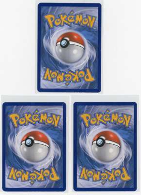The Venusaur EX is in Near Mint condition. The Blastoise EX is in Lightly Played condition, with some typical border wear on the bottom and right edge (when viewed from the back). The Charizard is in Moderately Played condition with slightly more obvious whitening/edge wear on the bottom of the card.