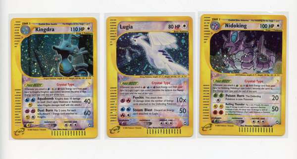 Released in January 2003 Aquapolis was the penultimate set from Wizards of the Coast and the second set in the e-reader series. The chase cards are the three secret rare crystal Pokémon, Kingdra, Nidoking and Lugia. The set has done nothing but increase in price over the last six months and shows no sign of slowing down.