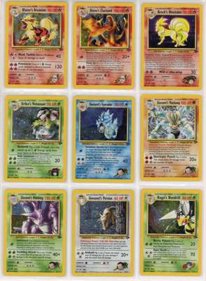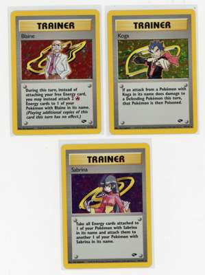 Blaine Holo Very Light Play, Giovanni Holo Near Mint or better, Koga Holo Near Mint or better, Sabrina Holo Near Mint or better. Every other card in the collection is in light play to near mint or better condition but the vast majority or Near Mint.