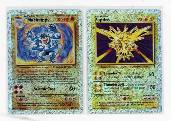 Each card is individually sleeved and ranges from Near Mint to Poor but the vast majority are Near mint (only two/three cards are worse than LP). The key cards/Rares are Hitmonlee, Exeggutor, Hypno, Beedrill, Butterfree, Kabutops, Pidgeot, Snorlax, Nidoking, Jolteon, Flareon, Venusaur, Zapdos, Alakazam, Muk, Dark Vaporeon, Machamp, Magneton and Pidgeotto.