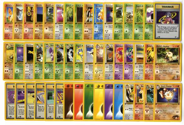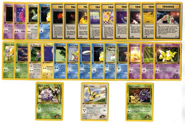 A partially complete set of 1st Edition Gym Challenge, featuring all 95 of the 132 cards from the Gym Challenge expansion, released in 2000. The set is a follow-up to Gym Heroes, expanding the focus on the Gym Leaders from the original Pokémon games. Gym Challenge introduced more iconic trainer cards and powerful Pokémon like Giovanni’s Machamp, Koga’s Ditto, and Misty’s Gyarados, making it a highly sought-after collection.