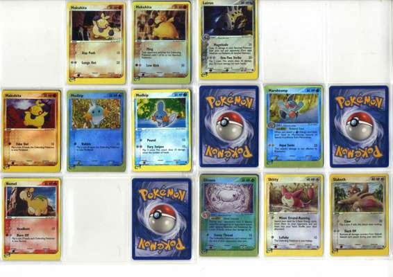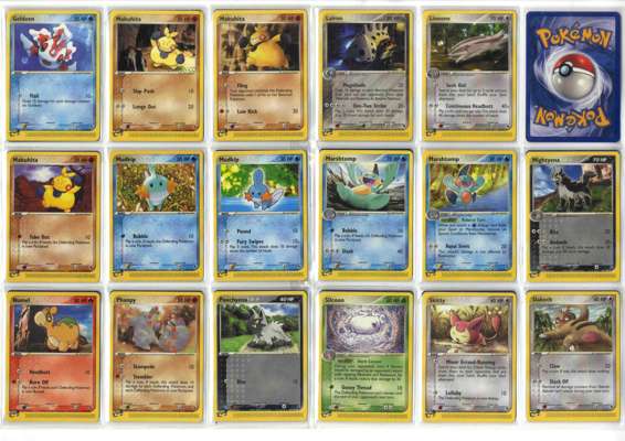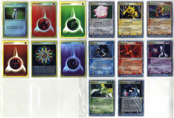 A partially complete Ruby & Sapphire base set including all the original ‘ex' Pokémon and a plethora of reverse holos. This set includes ALL of the original 9 ‘EX’ Pokémon, including Mewtwo ex and Lapras ex.