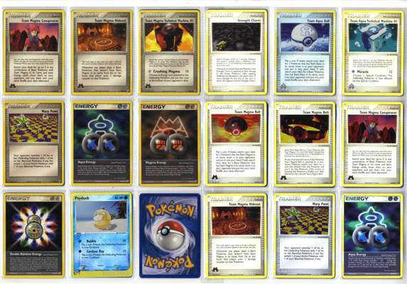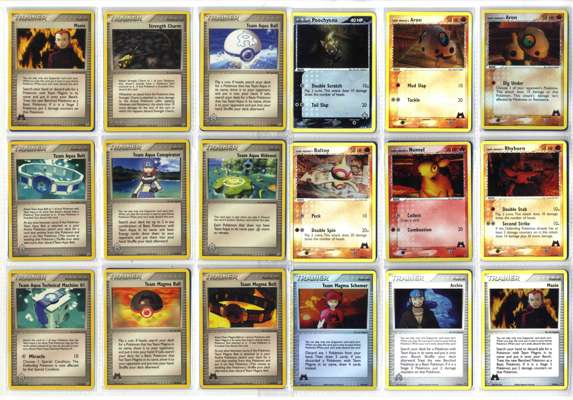 #3 Team Aqua's Kyogre, #6 Team Aqua's Walrein, #7 Tea, Magma's Aggron, #9 Team Magma's Groudon, #23 Team Magma's Zangoose - every other card is present.