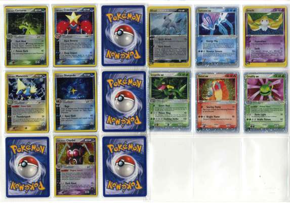 A partially complete master set of Ex Team Magma Vs Team Aqua - the highlight of the set is both secret rares, the Absol and the Jirachi and four of the six ‘ex’ Pokémon: Sceptile ex, Entei ex, Cradily ex and Suicune ex.