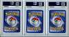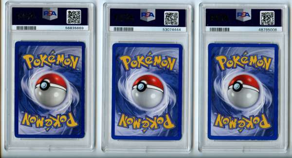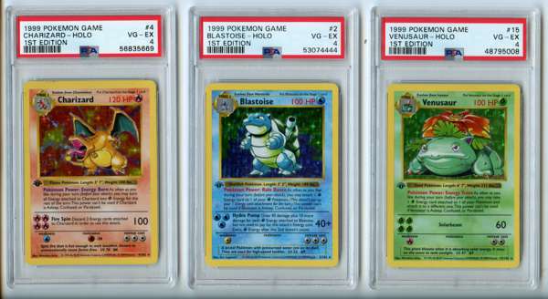 This lot contains 1 copy of each Charizard, Blastoise and Venusaur all 1st Edition Shadowless. All PSA 4 graded.