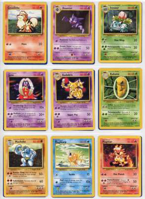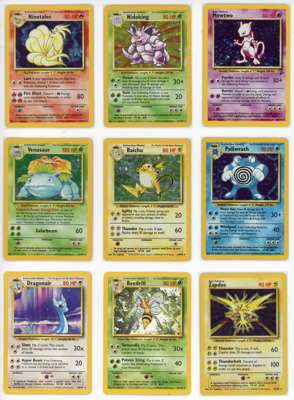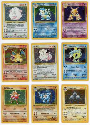 Alakazam NM, Blastoise LP, Chansey LP+, Charizard LP, Clefairy NM, Gyarados LP, Hitmonchan MP, Machamp LP, Magneton NM, Mewtwo LP, Nidoking MP, Ninetales MP, Poliwrath LP, Raichu MP, Venusaur LP, Zapdos MP.