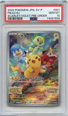 A Pikachu #001 SV-P Japanese Preorder Promo, graded GEM MT 10 by PSA