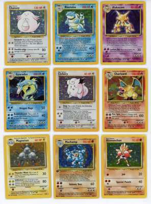 Alakazam Mod Play, Blastoise Mod play, Chansey Mod Play, Charizard Mod Play- (The card is good on the front but has some signs of wear on the back right hand side of the card) Clefairy Light Play, Gyarados Mod Play, Hitmonchan Played, Machamp Light play/just mod, Magneton Light Play, Mewtwo Light Play, Nidoking Mod Play, Nintales Mod Play, Poliwrath lLight Play, Raichu Mod Play, Venusaur Mod Play, Zapdos Light Play+.