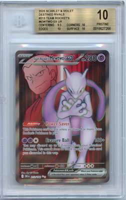 Team Rocket's Mewtwo #213 Ultra Rare from Destined Rivals, graded PRISTINE 10 by BGS.