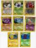 Arbok #35 reverse holo LP, Nidoking H18 HP (edge peel), Phanpy #100 reverse holo MP, Slowking H22 MP, Togetic H27 HP, Jumpluff H13 HP, Scizor H21 HP.