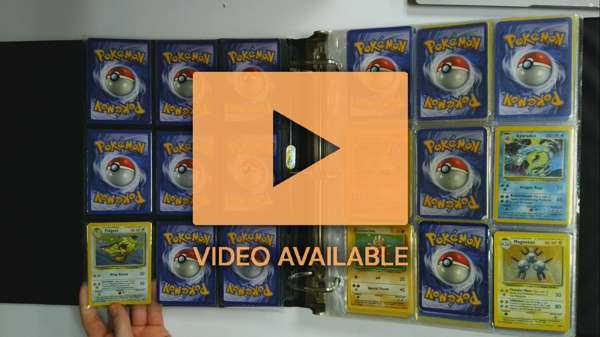 This lot features partially completed sets from the WOTC era. This includes cards from Base Set, Jungle, Fossil, Team Rocket, Gym Heroes, and the Black Star Promos. This is. genuine childhood collection that has been carefully stored. As such, the condition range mostly falls around MP-LP, with some exceptions. The holos and their respective conditions are as follows: