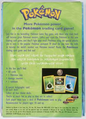 This theme deck released in 1999 is in impressive condition for its almost three-decade age. While this item has been opened and the plastic wrapping removed, the majority of the deck is still present (a hand full of non-holos are missing), along with the coin, player guide, and card list. The box does show some signs of fading.