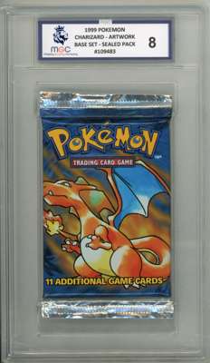 Graded and authenticated by MGC, one of the leading UK grading companies, this sealed unlimited Base Set booster pack features the iconic Charizard artwork. The sealed booster pack has been awarded a near mint 8.