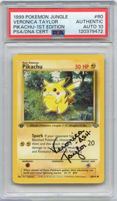 PSA Auto 10 Pikachu #60 Jungle 1st Edition - Signed by Veronica Taylor