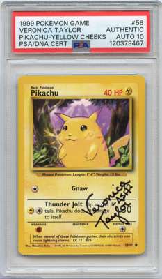 PSA Auto 10 Pikachu #58 Base Set 'Yellow Cheeks' - Signed by Veronica Taylor