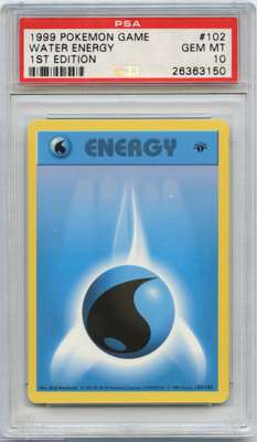 Water Energy #102 from Base Set 1st Edition, graded GEM MT 10 by PSA.