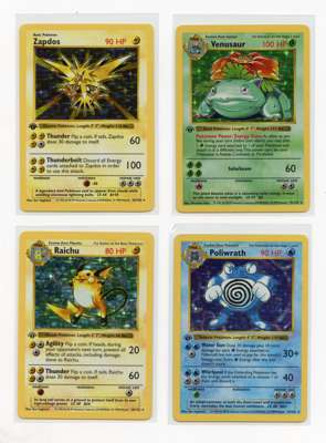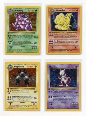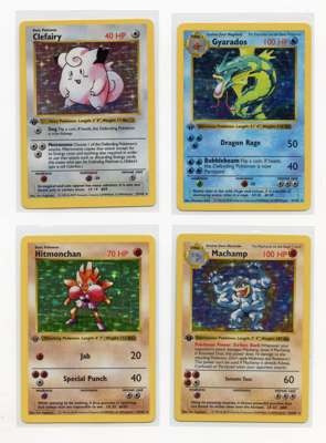 …Alakazam #1 LP, Blastoise #2 LP+ (very minor whitening), Chansey #3 NM, Clerfairy #5 LP+, Gyarados #6 LP, Hitmonchan #7 LP, Machamp #8 LP, Magneton #9 LP+, Mewtwo #10 LP, Nidoking #11 LP, Ninetales #12 MP (heavier whitening), Poliwrath #13 MP (minor crease), Raichu #14 LP+, Venusaur #15 LP+, Zapdos #16 LP+/NM.