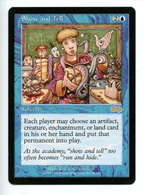 This lot contains 1 copy of Show and Tell from the Urza's Saga set in Near Mint condition.
