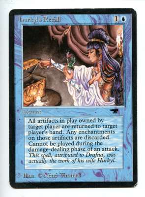 This lot contains 1 copy of Hurkyl's Recall from the Antiquities set in Moderately Played Condition