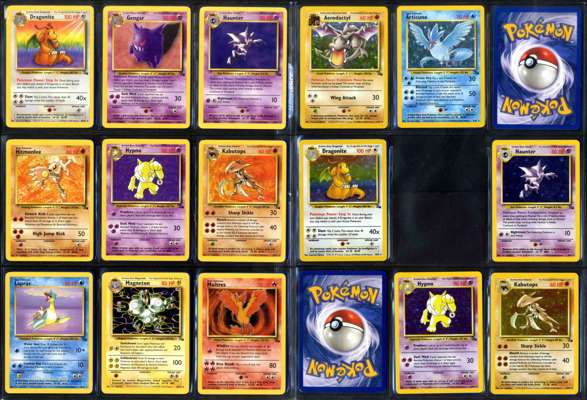 This lot contains a partially Complete Set of Fossil in Unlimited Print. All cards are in NM-LP condition, with all Holos being in similar conditions.