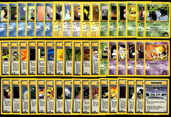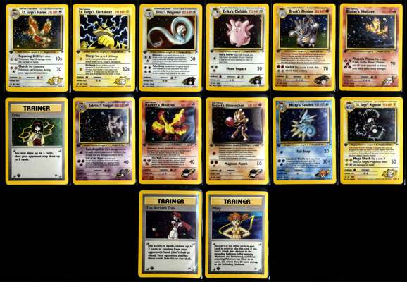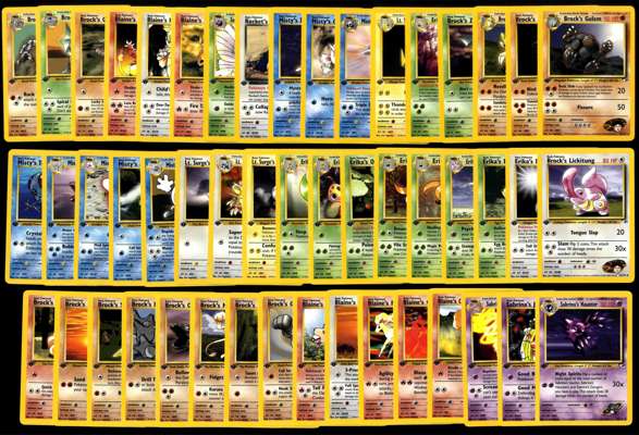 1/132 Blaine's Moltres2/132 Brock's Rhydon3/132 Erika's Clefable4/132 Erika's Dragonair6/132 Lt. Surge's Electabuzz7/132 Lt. Surge's Fearow8/132 Lt. Surge's Magneton9/132 Misty's Seadra11/132 Rocket's Hitmonchan12/132 Rocket's Moltres14/132 Sabrina's Gengar16/132 Erika18/132 Misty19/132 The Rocket's TrapAbout this set: