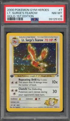 PSA 8 1st Edition Lt. Surge's Fearow - Gym Heroes Holo #7