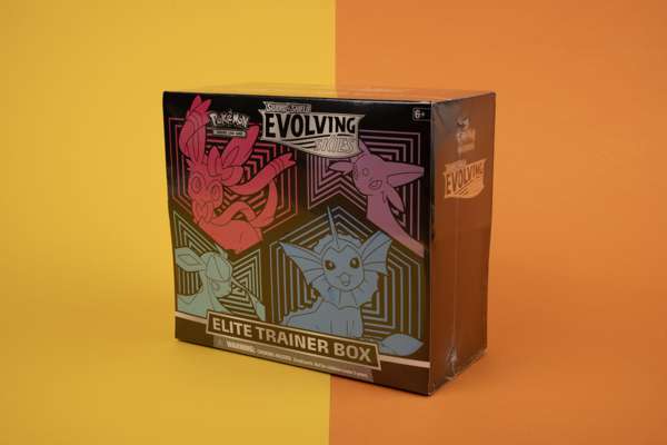 This lot contains a factory sealed Evolving Skies Elite Trainer Box, specifically the Vaporeon, Espeon, Glaceon and Sylveon variation. This product is highly-sought after due to the high number of super valuable cards in the set such as Umbreon VMAX, Rayquaza VMAX, and all other Eevelutions.