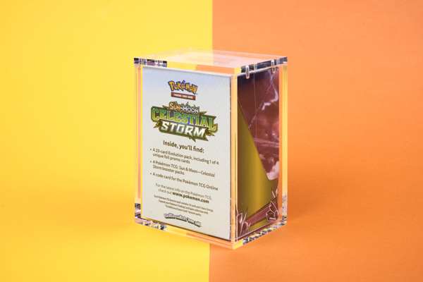 This lot contains a sealed Celestial Storm expansion prerelease kit. It is stored in an acrylic protector from Viridian Forest.