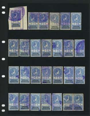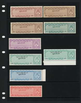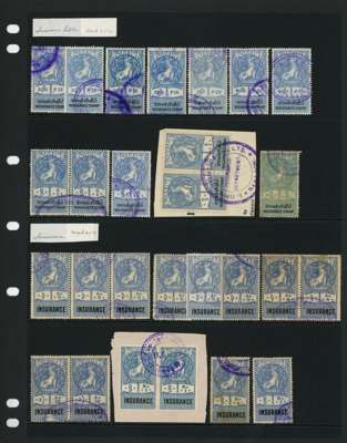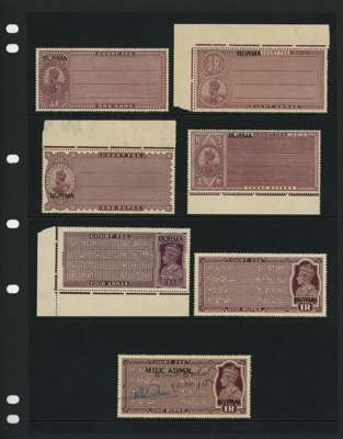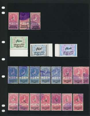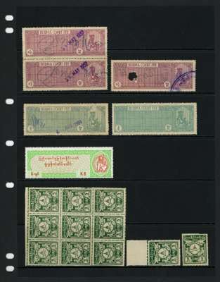 Extensive revenue collection on stocksheets with 1937 Court fee overprints on India mint and used and with ‘MILY ADMIN’ opts, Japanese Occupation issues both mint and used, post-independence Court Fee issues mint, good range of Insurance, Special Adhesives which include overprints on India. An interesting lot and a fine basis for expansion.