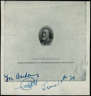 Southern Rhodesia Revenue 1930 Die Proof of head
