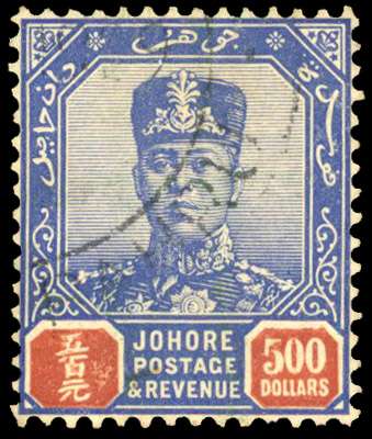 1926 $500 blue and red with light fiscal cancellation, with gum, excellent colour. SG 128, £450