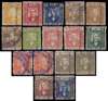 US Occupation of Vera Cruz: 1914-15 Juarez issue overprinted ‘BEBIDAS IMPORTADAS’ reading downwards, 1c, 2c, 5c, 10c (3), 25c, 50c (2), 1p, 5p (2), 10p (2) 50p and 100p, all perf 12 but for 2c (rouletted) and 1c (perf horizontally). A superb set, the 50p and 100p major rarities with only 1200 of each issued with a tiny survival rate. Roberts US39a/50 cat $2,000+