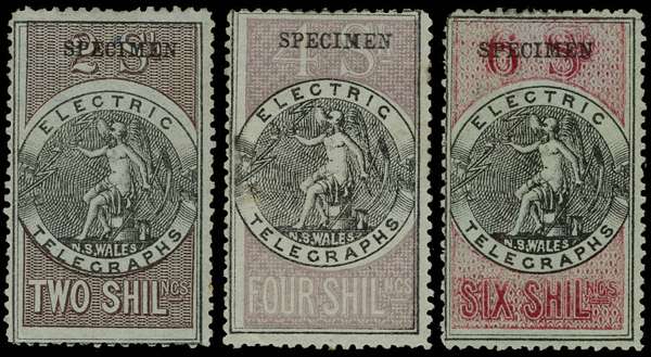 NEW SOUTH WALES 1871 SG T5/T7 Telegraph 2s, 4s, 6s overprinted Specimen