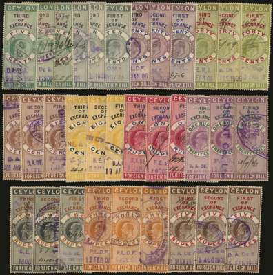 CEYLON 1905 Revenue Foreign Bill: KEVII complete set fine used