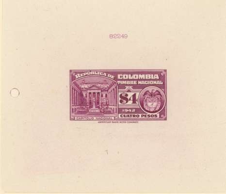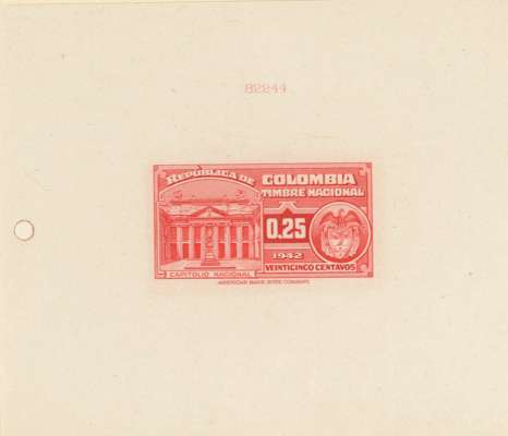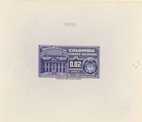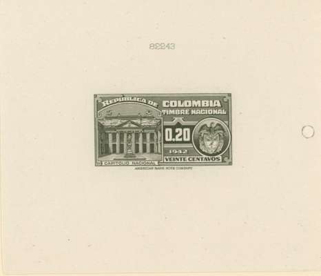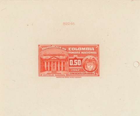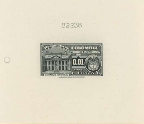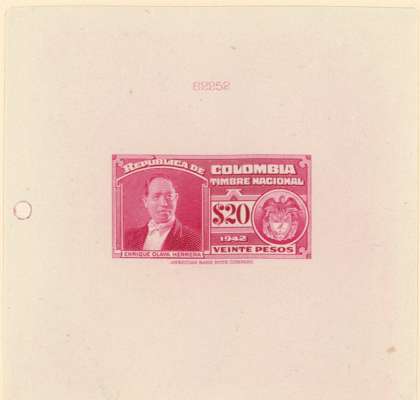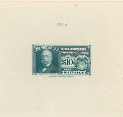 Timbre Nacional: 2c to $20 set of 15 completed die proofs in issued colours on thin card (155x230mm) plus two master dies, each with complete die-sinking, and showing die number above impression. A unique group ex ABNco archives.
