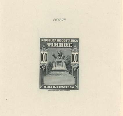 1c to 100C set of 16 completed die proofs in issued colours on thin card (155x230mm) plus two master dies, each with complete die-sinking, and showing die number above impression. A unique group ex ABNco archives.