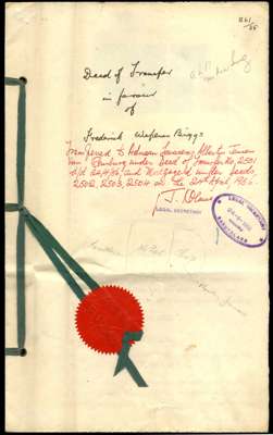 1953 (11 April) complete Mortgage Bond (folded for display) bearing 1950 Series 35 £5 light blue, (3) including bi-lingual pair, Series 34 2/-, 1933 £1 black (3) and KGVI postage 1s red-orange (SG 25) for a total franking of £18/3/-, tied by ‘LEGAL SECRETARY/ MASERU/ BASUTOLAND’ oval ds.