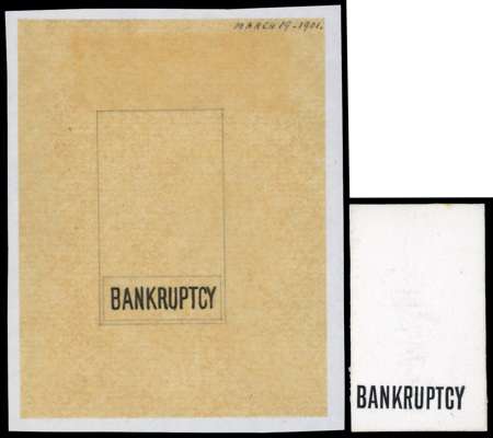 Unappropriated Dies, Bankruptcy: 1901 (March 19) Stamp sized value tablet essay executed in black on tracing paper (53x70mm) affixed to white card for display, offered with value tablet die proof of the finished design. Unique.