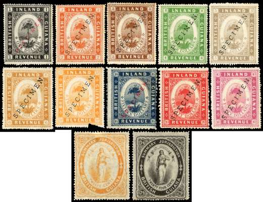 British Guiana 1869-78 Inland Revenue Specimen Stamps x12