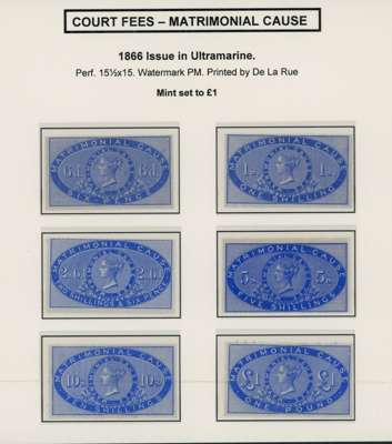 GB. Matrimonial Cause. 1866 set of six in ultramarine Booth 13-18 mint