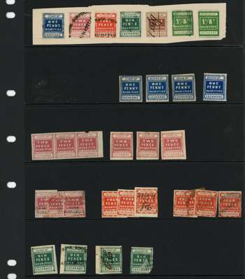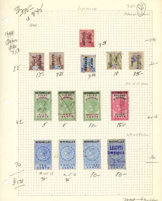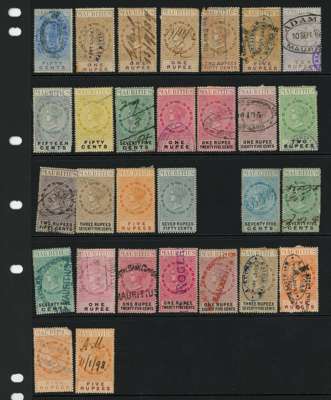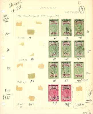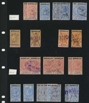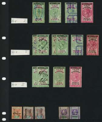 (and SEYCHELLES) QV collection on stock sheets and pages starting with local litho small format Bill of Exchange issue with values to 16s8d and DLR set organised in triplicate and largely complete, good range of insurance issues, Internal revenue organised by sets including unlisted Inverted (3) and reversed watermark varieties and local surcharges, also good range of SEYCHELLES including local surcharges, high values, again well organised.