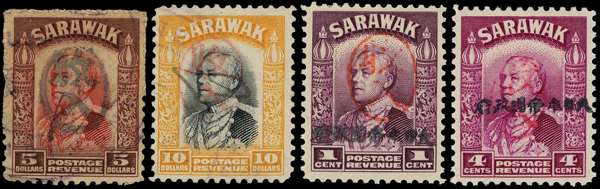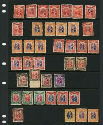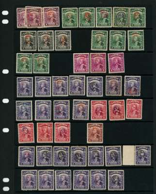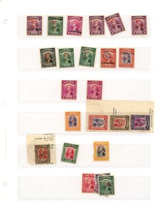 1942 Collection (c.120) on stock sheets of postage stamps repurposed for revenue use with Japanese oval 'chops' mint and used with values to $10, many better including a few with straight line chops in black. A good lot.