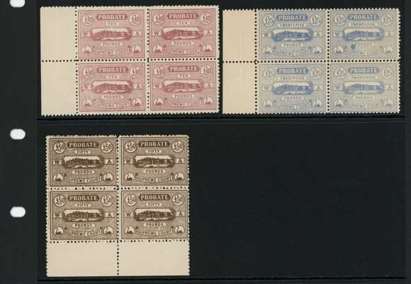1907 collection of mint Probate, Fees and Supreme Court issues on stock sheets, including some blocks and multiples, arranged by watermark and perforation types with values to £100. A good collection of this attractively designed series.