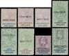 Land Commission. 1881-8 2d - 2s and 5s values, overprinted SPECIMEN Type GB9, o.g., a few minor blemishes including 5s with slightly blunt lower right corner; and 1902 6d and 1s overprinted Type GB16, 1s with a short perf, o.g. Booth 1-5, 7, 15-16