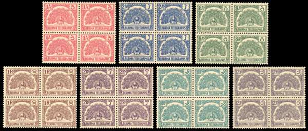 Burma Telegraphs. 1946 set to 10r in unmounted blocks of four SG T1-7