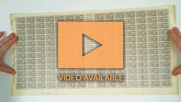 Unappropriated Dies. KG VI 15s imperforate plate proof sheet in black on unwatermarked glazed wove paper, rolled up in cardboard tube, 168 impressions with intact interpanneau pillars in two 12 x 7 panes. A working proof sheet with one position marked in red for correction. Manuscript ink notations; ‘Royal Mint 11.4.46’, ‘Fiscal Plate No. 2/38’, ‘Proof No. G4505’ and ‘Not appd’. Some light bends and a trifle soiled, as to be expected
