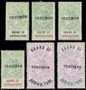 Board of Agriculture. 1889 1s to £5 set of six, each overprinted SPECIMEN type 9, brilliantly fresh o.g., showing only the faintest traces of hinging. A few short perfs, otherwise very fine, and way above average for this key set of GB revenue philately. Booth 32/7